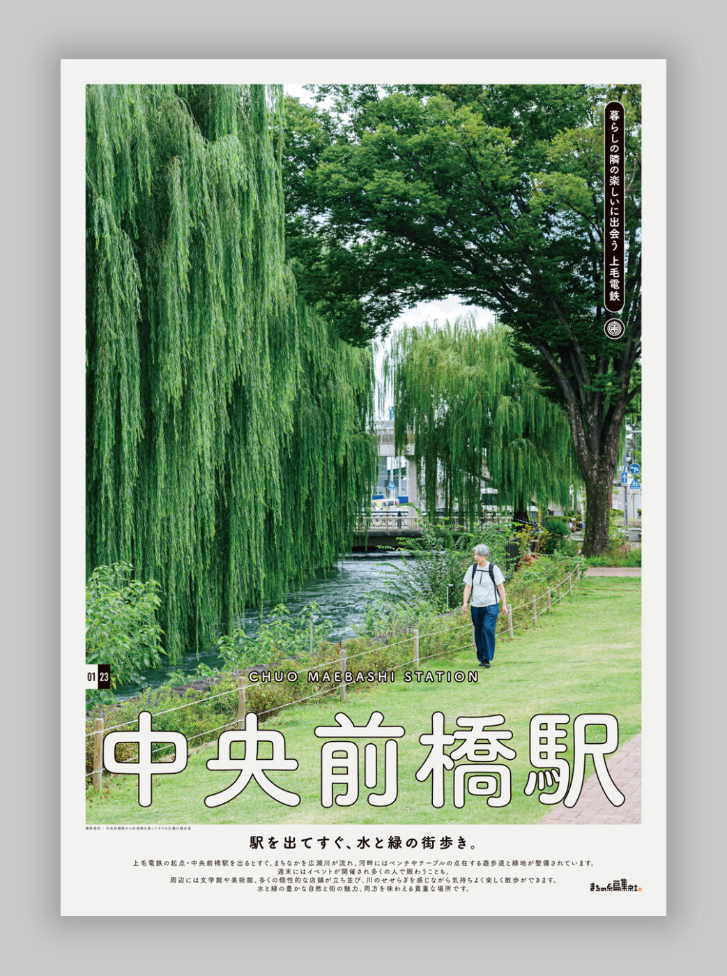 ポスターは上毛電鉄中央前橋駅および本社ビル、しののめ信用金庫前橋営業部つどにわライブラリーで掲示。小冊子は、上毛電鉄有人駅(中央前橋駅、大胡駅、赤城駅、西桐生駅)、しののめ信用金庫各店などで配布しています。