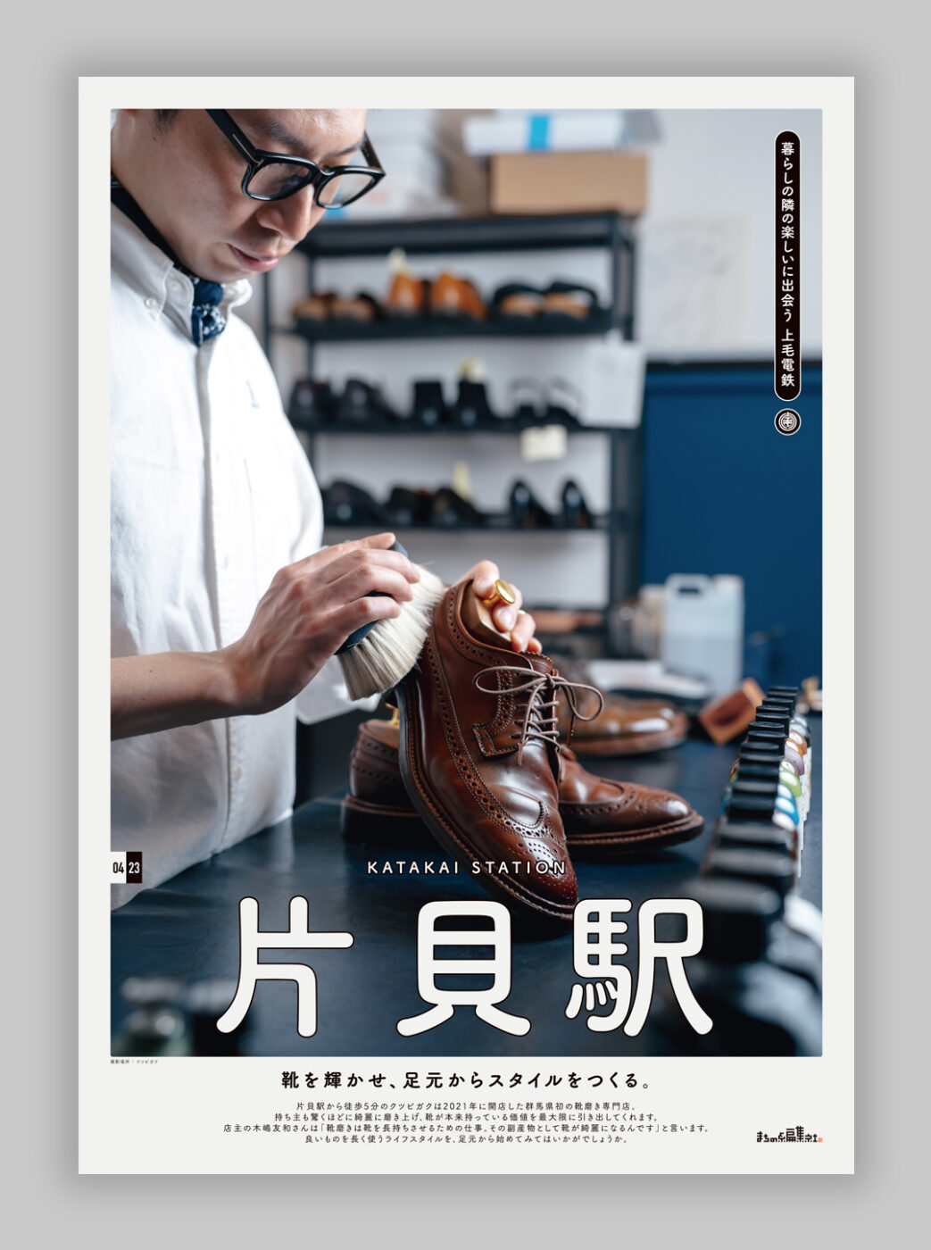 片貝駅から徒歩5分のクツビガクは2021年に開店した群馬県初の靴磨き専門店。持ち主も驚くほどに綺麗に磨き上げ、靴が本来持っている価値を最大限に引き出してくれます。店主の木嶋友和さんは「靴磨きは靴を長持ちさせるための仕事。その副産物として靴が綺麗になるんです」と言います。良いものを長く使うライフスタイルを、足元から始めてみてはいかがでしょうか。