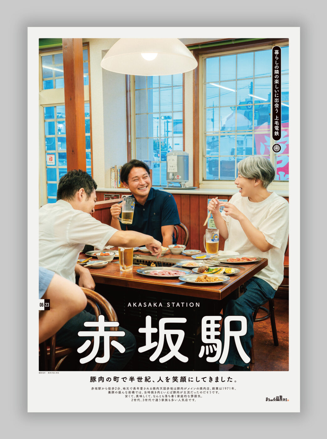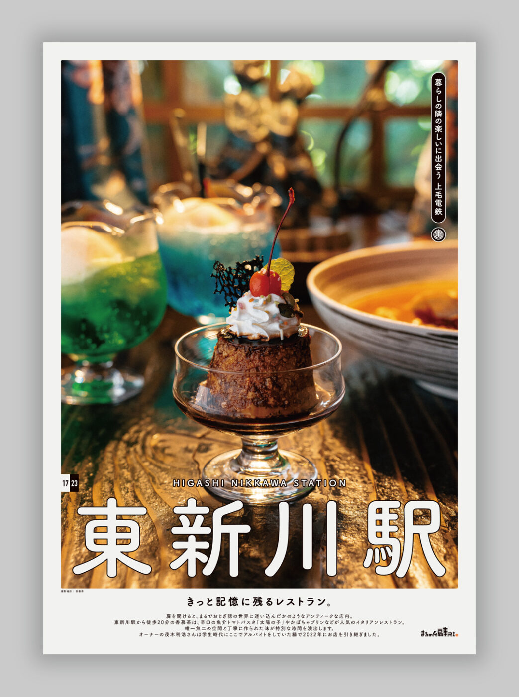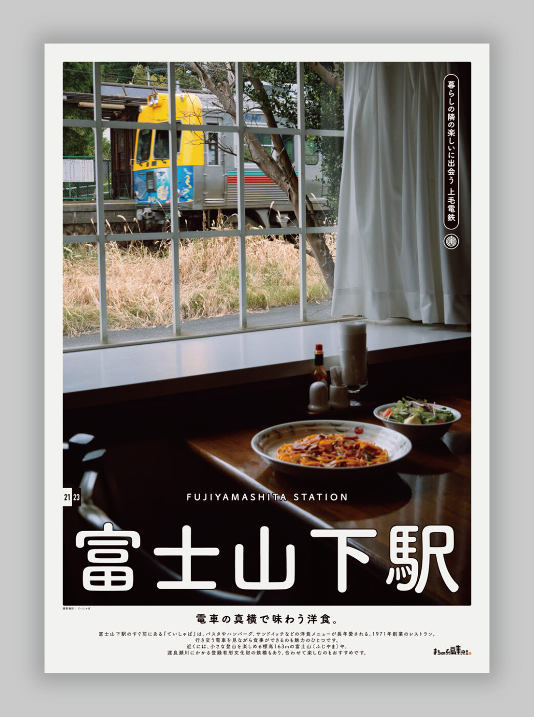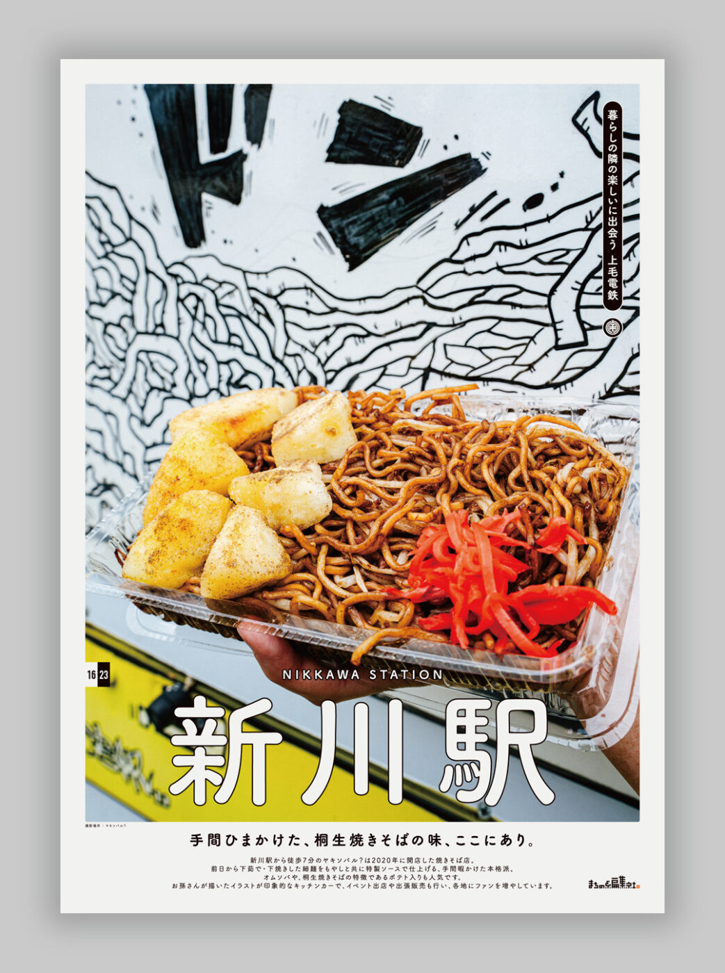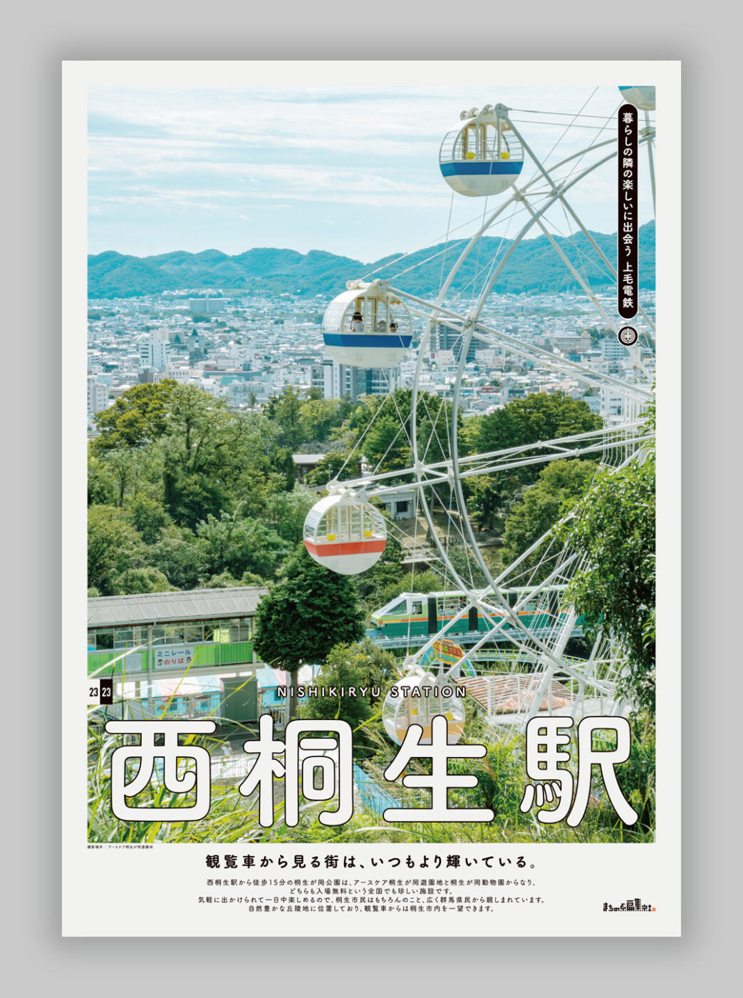 『暮らしの隣の楽しいに出会う』は、上毛電鉄全23駅の周辺にある「わざわざ行きたい楽しい場所」を紹介する全24枚の連作ポスタープロジェクトです。つぐひを運営するまちの編集社が、しののめ信用金庫と上毛電鉄のバックアップのもと、連作ポスターと小冊子を制作しました。